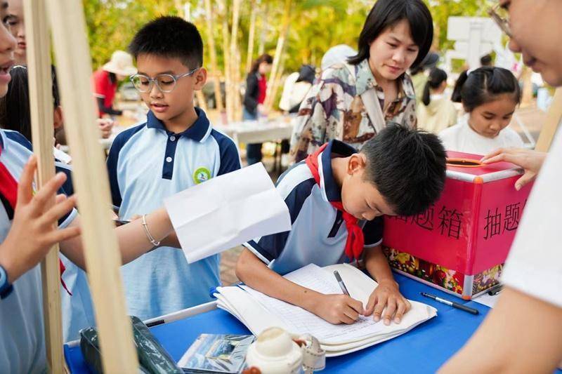 启动仪式现场还打造了丰富的互动体验区。在打卡互动环节,阅读成果展、冲浪主题书香打卡墙、AI机器人体验区吸引了众多师生和家长参与;创建国家文明城市、“扫黄打非”、国防教育、国家安全教育及网络安全知识竞答等多个摊位,让市民在趣味互动中收获知识的同时,还能领取图书兑换券、创文伴手礼等福利。
